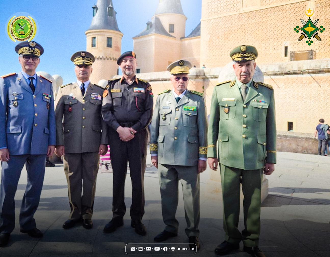 شارك قائد الأركان العامة للجيوش بموريتانيا الفريق المختار بله شعبان الخميس، في اجتماع قادة جيوش دول مبادرة 5 + 5 دفاع، في مدينة سيغوفيا الأسبانية التاريخية.