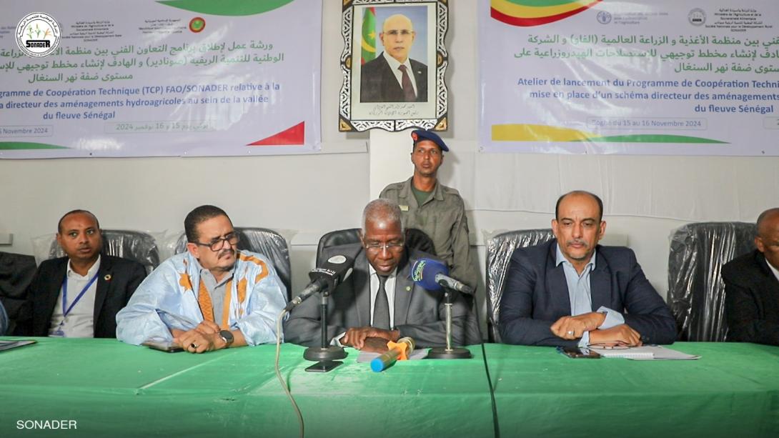 أشرف المدير العام للشركة الوطنية للتنمية الريفية"صونادير" حماده ولد ديدي ولد سيدأحمد ووالي لبراكنه محمد ولد السالك، السبت، في مدينة بوغي على اختتام ورشة فنية حول إنجاز مخطط توجيهي للاستصلاحات الهيدروزراعية في منطقة الضفة بالتعاون بين الشركة ومنظمة "الفاو".