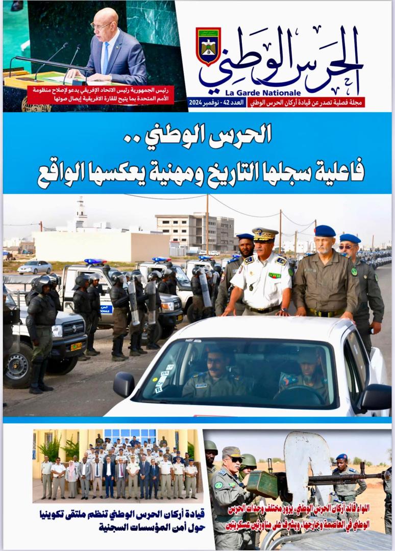 كما تناول العدد الجديد مقالات فكرية وتحليلية متنوعة لعدد من ضباط الحرس الوطني تناولت "مفهوم الأمن والدفاع في البيئة المحلية والدولية" و"دور الحرس الوطني في تأمين الانتخابات الرئاسية 2024" و"أهم إنجازات الحرس الوطني في العام 2024"، و"أسس تسيير المصادر البشرية للجيوش" و"الجغرافيا السياسية وارتباطها بالأمن" و"تأثير وسائل التواصل الاجتماعي على الأمن الوطني".