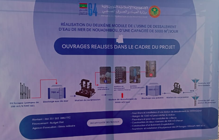 دشن الرئيس محمد ولد الشيخ الغزواني،صباح اليوم الجمعة، محطة تحلية المياه في العاصمة الاقتصادية نواذيبو، التي بلغت تكلفتها 2.6 مليار أوقية قديمة.