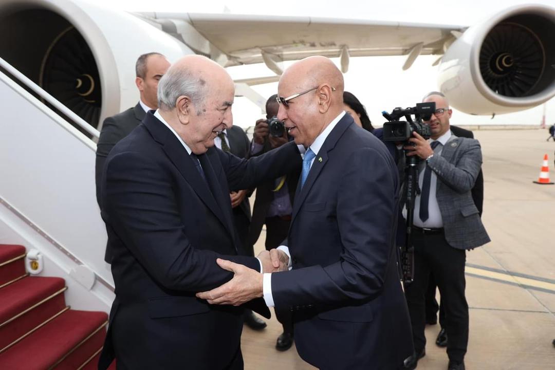 واستُقبل الرئيس تبون بمطار نواكشوط الدولي، من طرف نظيره محمد ولد الشيخ الغزواني.