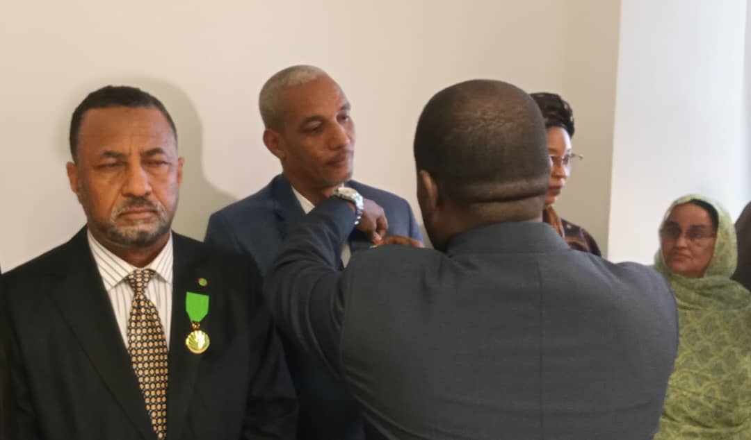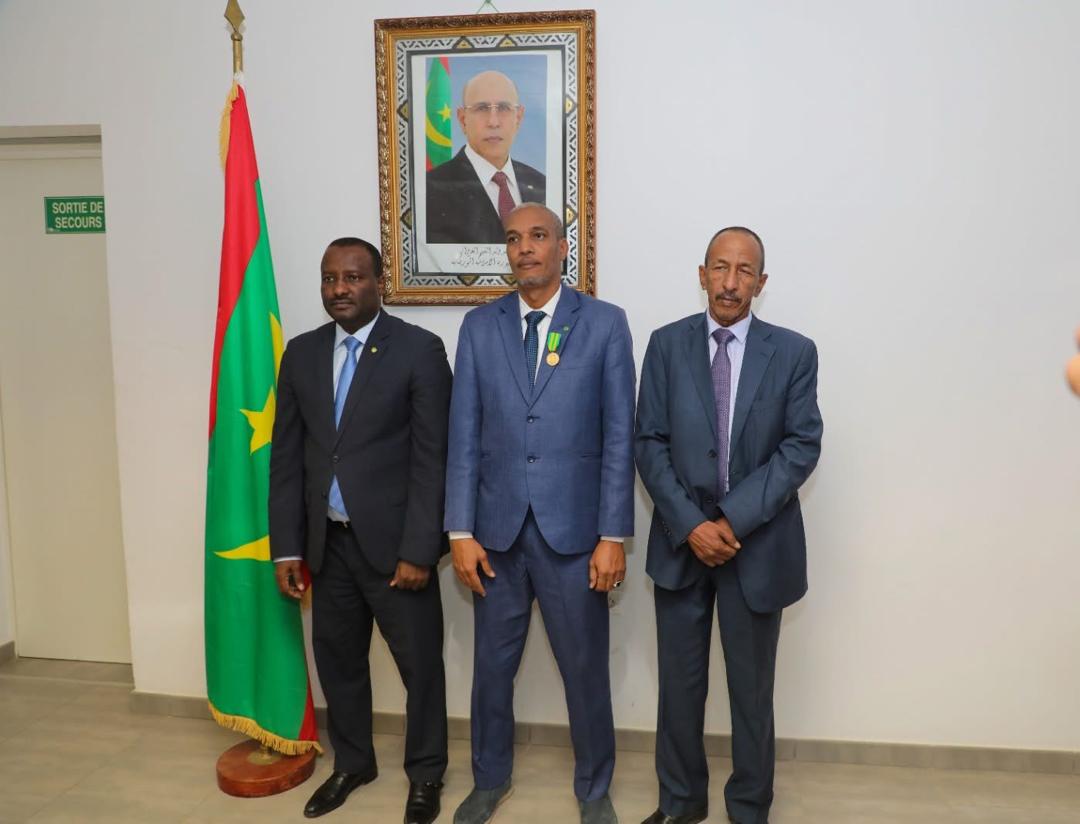 وشح وزير الوظيفة العمومية محمد ولد اسويدات ، اليوم الاثنين، بميدالية شرف من الدرجة الأولى، الكاتب الخاص للوزير؛ محمد بوي محمد عبد الفتاح الطالب بوبكر ، وذلك ضمن توشيحات شملت عددا من أطر وموظفي القطاع.