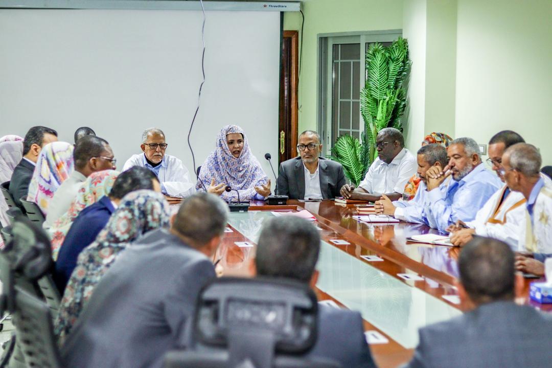 عقدت وزيرة التجارة زينب بنت أحمدناه، وزير الزراعة امم ولد بيباته، اليوم السبت،اجتماعًا موسعًا بحضور رئيس اتحاد أرباب العمل الموريتانيين زين العابدين ولد الشيخ أحمد، إلى جانب ولاة ولايات نواكشوط الثلاث وعمد مقاطعاتها التسع.