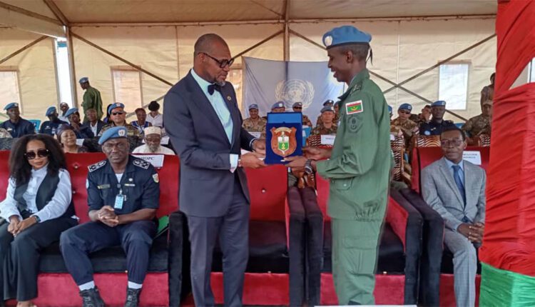 وشح رئيس ديوان بعثة الأمم المتحدة لإفريقيا الوسطى "مينيسكا" ريني أونانا، نيابة عن الممثلة الخاصة للسكرتير العام للأمم المتحدة فالانتين رغوابيزا، رئيسة البعثة، أمس الأربعاء في بانكي، عناصر وحدة الدرك الموريتانية العاملة ضمن قوات حفظ السلام بجمهورية وسط إفريقيا.