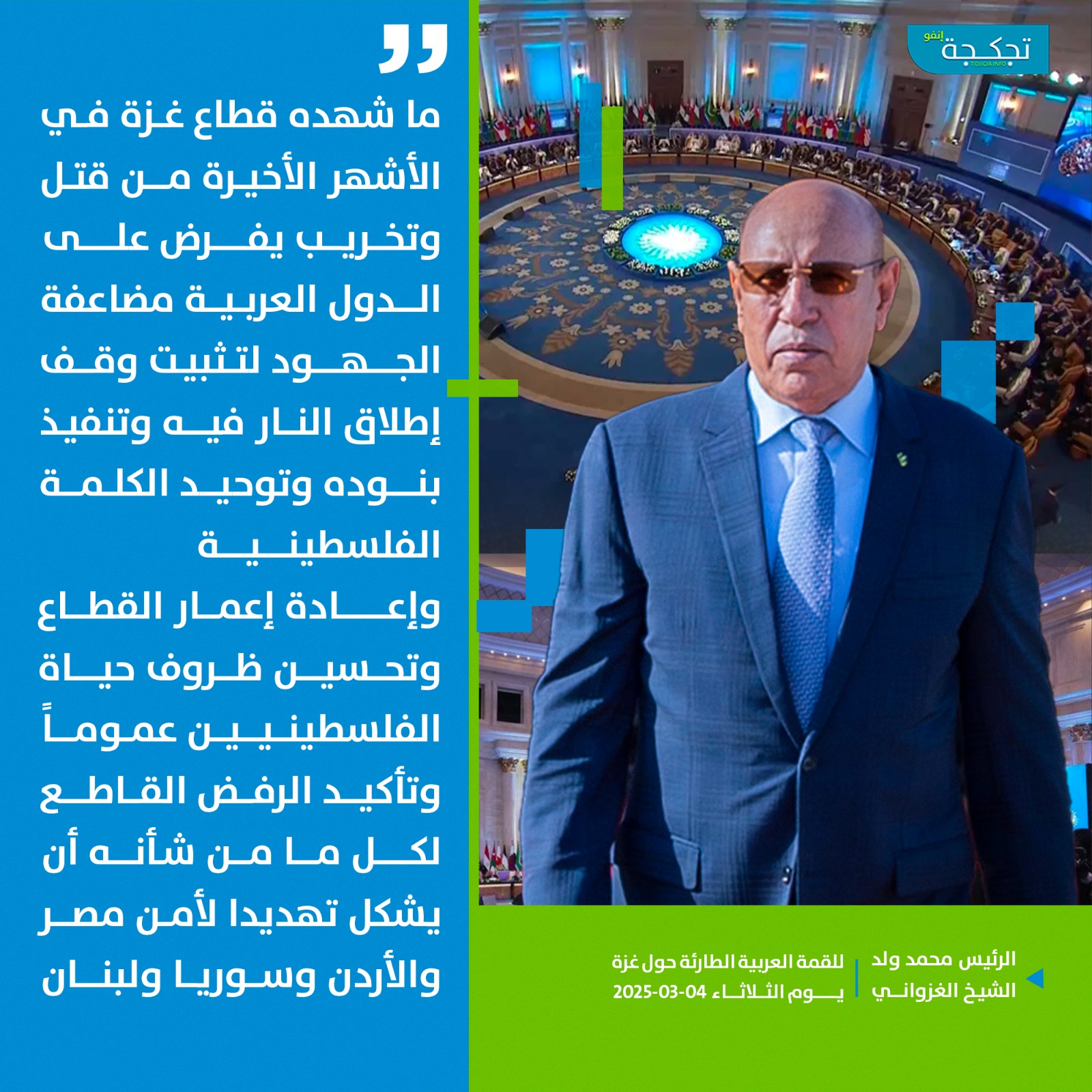 وصف الرئيس محمد ولد الشيخ الغزواني القضية الفلسطينية بأنها قضية مظلومية شعب وحرمة مقدسات ونصرة أشقاء بالنسبة لموريتانيا.