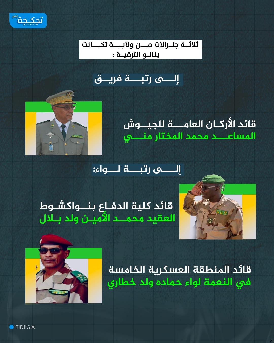 شملت ترقية الجنرالات التي أجرتها الحكومة الأربعاء ثلاثة من أبناء ولاية تكانت.