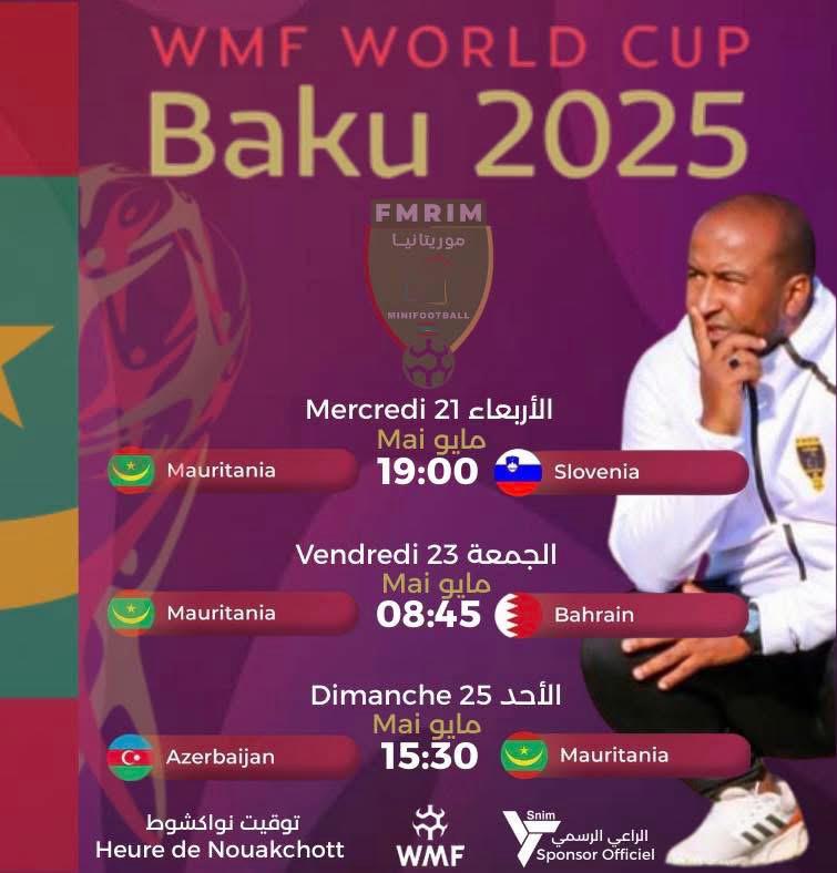 ويخوض المنتخب الوطني أولى مبارياته يوم الأربعاء 21 مايو أمام نظيره السلوفيني عند الساعة السابعة مساءً بتوقيت نواكشوط.