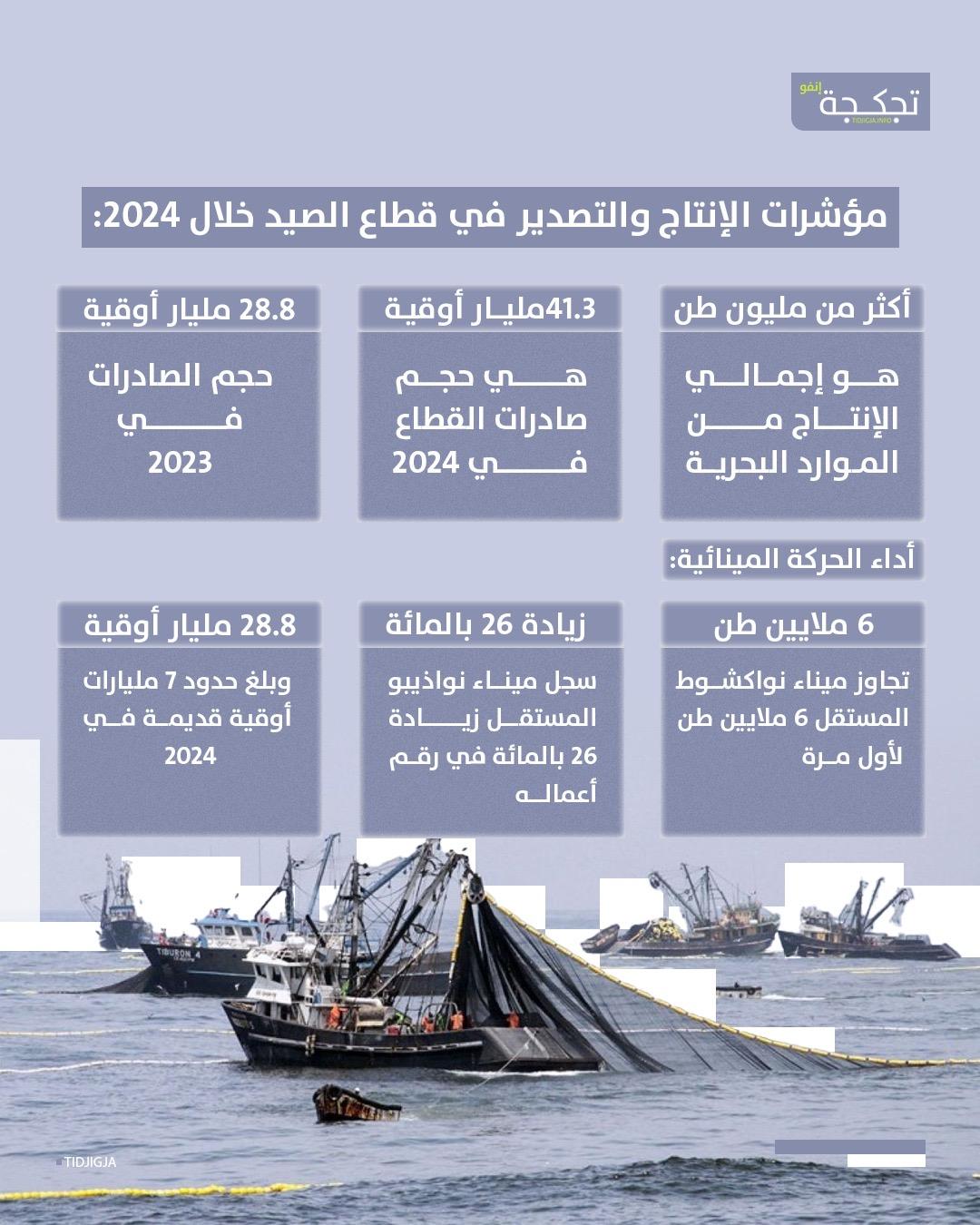 المزيد عن مؤشرات الإنتاج والتصدير في قطاع الصيد خلال 2024 في الانفوغراف المرفق: