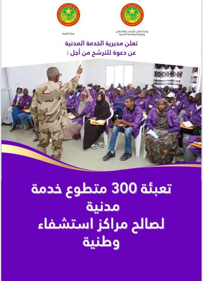 وسيتوزع المعنيون على عدة مؤسسات استشفائية بكافة ولايات موريتانيا، وفقاً للإعلان الصادر عن وزارة تمكين الشباب.