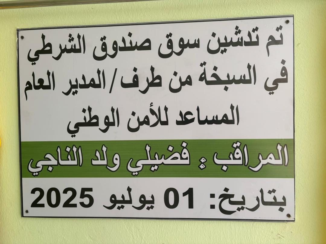 أشرف المدير العام المساعد للأمن للوطني المراقب فضيلي ولد الناجي، اليوم الثلاثاء، على تدشين سوق صندوق الشرطي على مستوى مقاطعة السبخه بولاية نواكشوط الغربية.