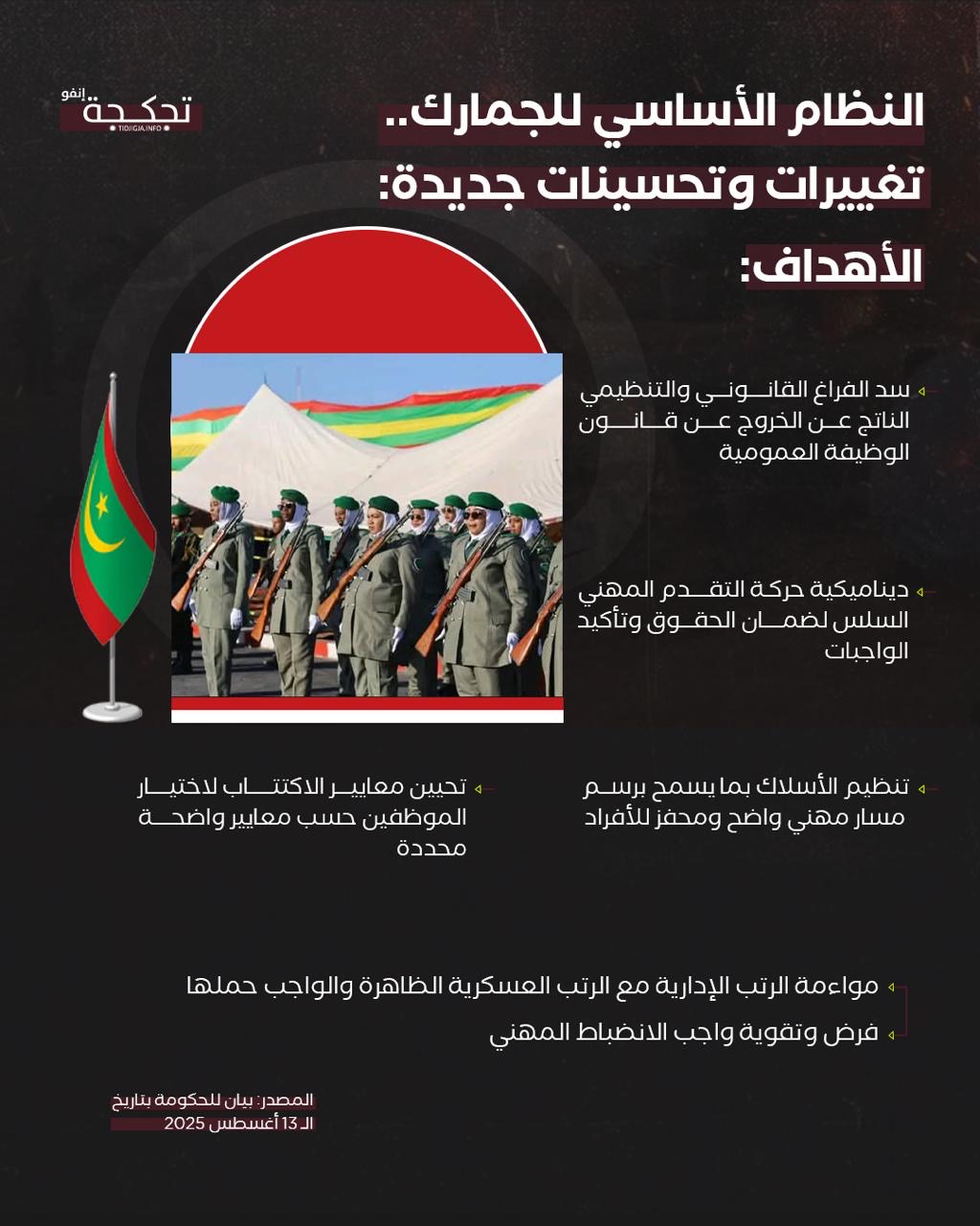 كما تضمنت التحسينات تحيين معايير الاكتتاب، بما يضمن اختيار الموظفين وفق شروط دقيقة ومحددة، ومواءمة الرتب الإدارية مع الرتب العسكرية التي يتعين حملها، إضافة إلى فرض وتعزيز الانضباط المهني.