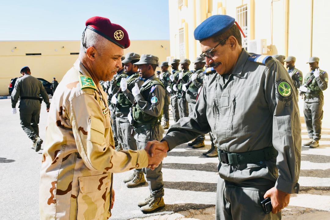 استقبل قائد أركان الحرس الوطني، الفريق إبراهيم فال الشيباني، اليوم الفريق حماده الشيخ بيده، قائد الأركان العامة للجيوش المساعد، الذي أدى زيارة لقيادة أركان الحرس الوطني، اطلع خلالها على جاهزية الوحدات المشاركة في العرض العسكري المقرر تنظيمه تخليدًا للذكرى الخامسة والستين لعيد الاستقلال الوطني، سواء كانت راجلة أو محمولة.