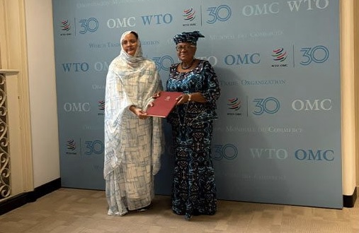 قدمت ممثلة موريتانيا الدائمة لدى مكتب الأمم المتحدة والمنظمات الدولية في جنيف عيشة فال فرجس، اليوم الاثنين، للمديرة العامة لمنظمة التجارة العالمية نغوزي أوكونجو-إيويالا، صك قبول موريتانيا لاتفاقية دعم مصايد الأسماك.