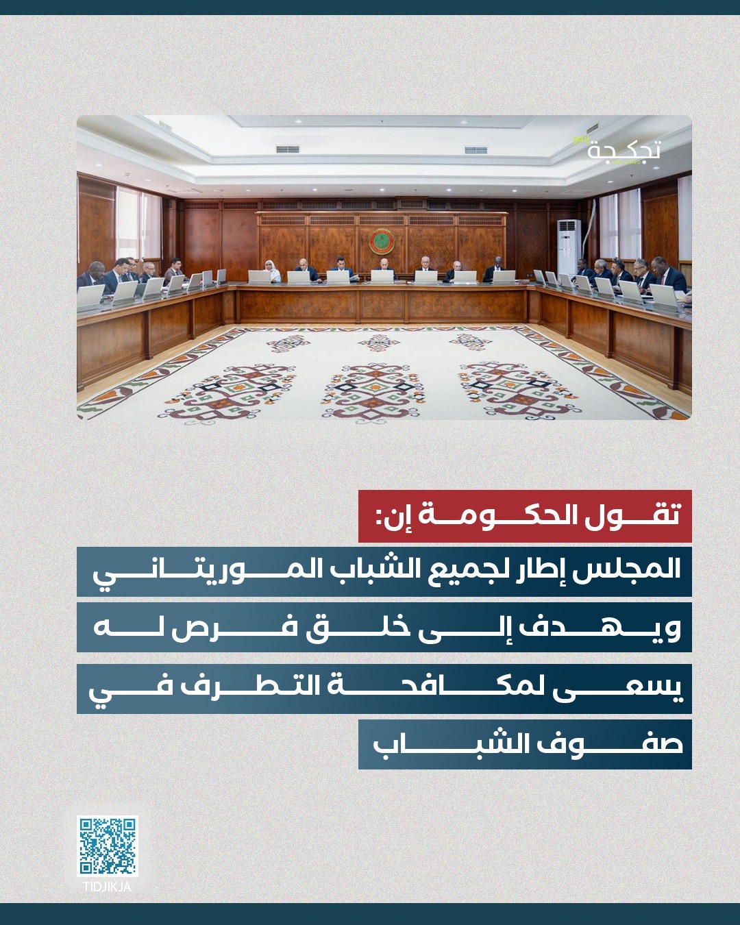 وخلال هذه الفترة، قدمت الحكومة المجلس كإطار جامع للشباب الموريتاني، يسعى لتعزيز مشاركتهم في التنمية ومكافحة التطرف، إضافة إلى خلق فرص العمل وتوفير تكوين فعّال يضمن دمج الشباب في الحياة الاقتصادية والاجتماعية.