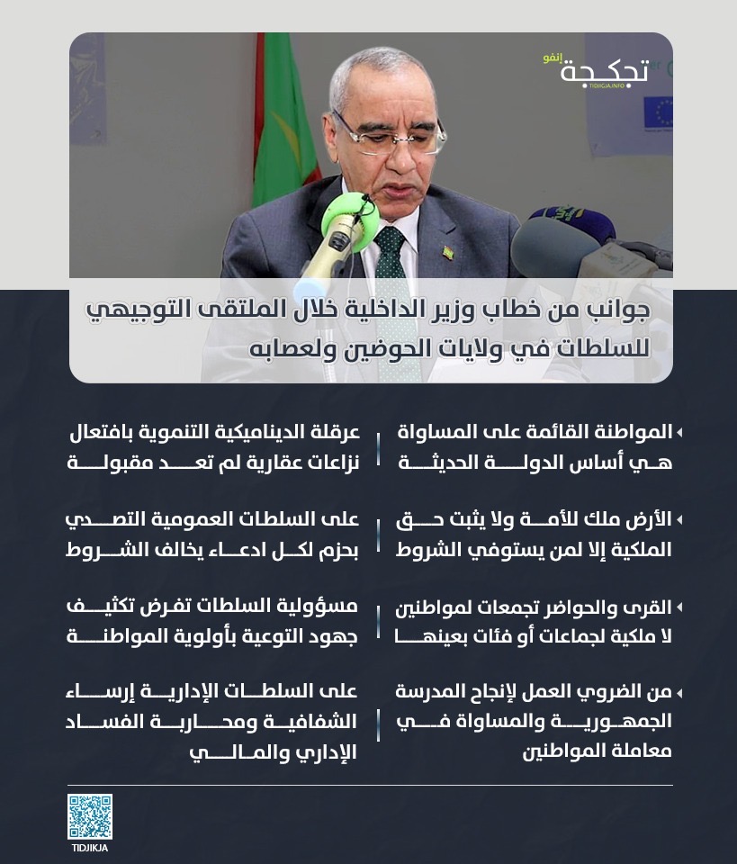 أكد وزير الداخلية محمد أحمد ولد محمد الأمين، أن المواطنة القائمة على المساواة هي أساس الدولة الحديثة.