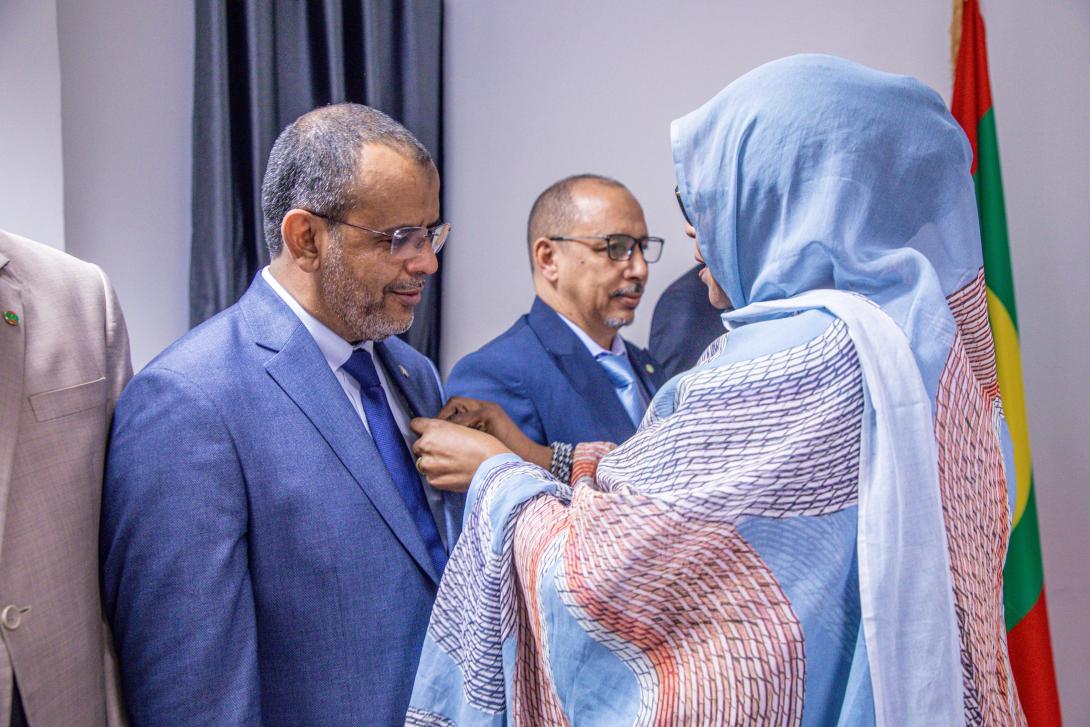 وشحت وزيرة الوظيفة العمومية مريم منت ييجل هميد، اليوم الخميس، مدير الشؤون الإدارية والمالية المساعد بوزارة الوظيفة العمومية والعمل محمد عبدالله ابيمين بوسام فارس في نظام الاستحقاق الوطني.