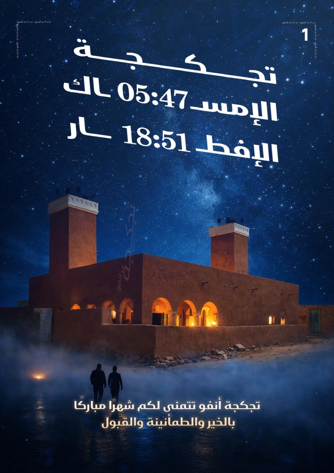 مواقيت الإمساك والإفطار في أول أيام رمضان بمدينة تجكجه