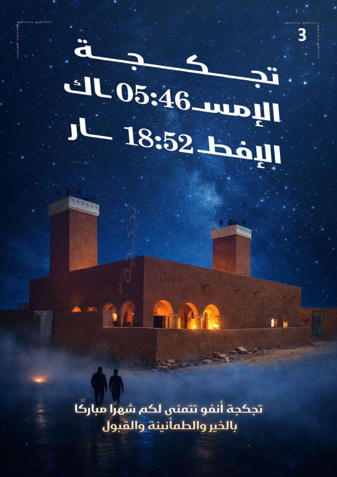 مواقيت الإمساك والإفطار في ثالث أيام رمضان بمدينة تجكجه