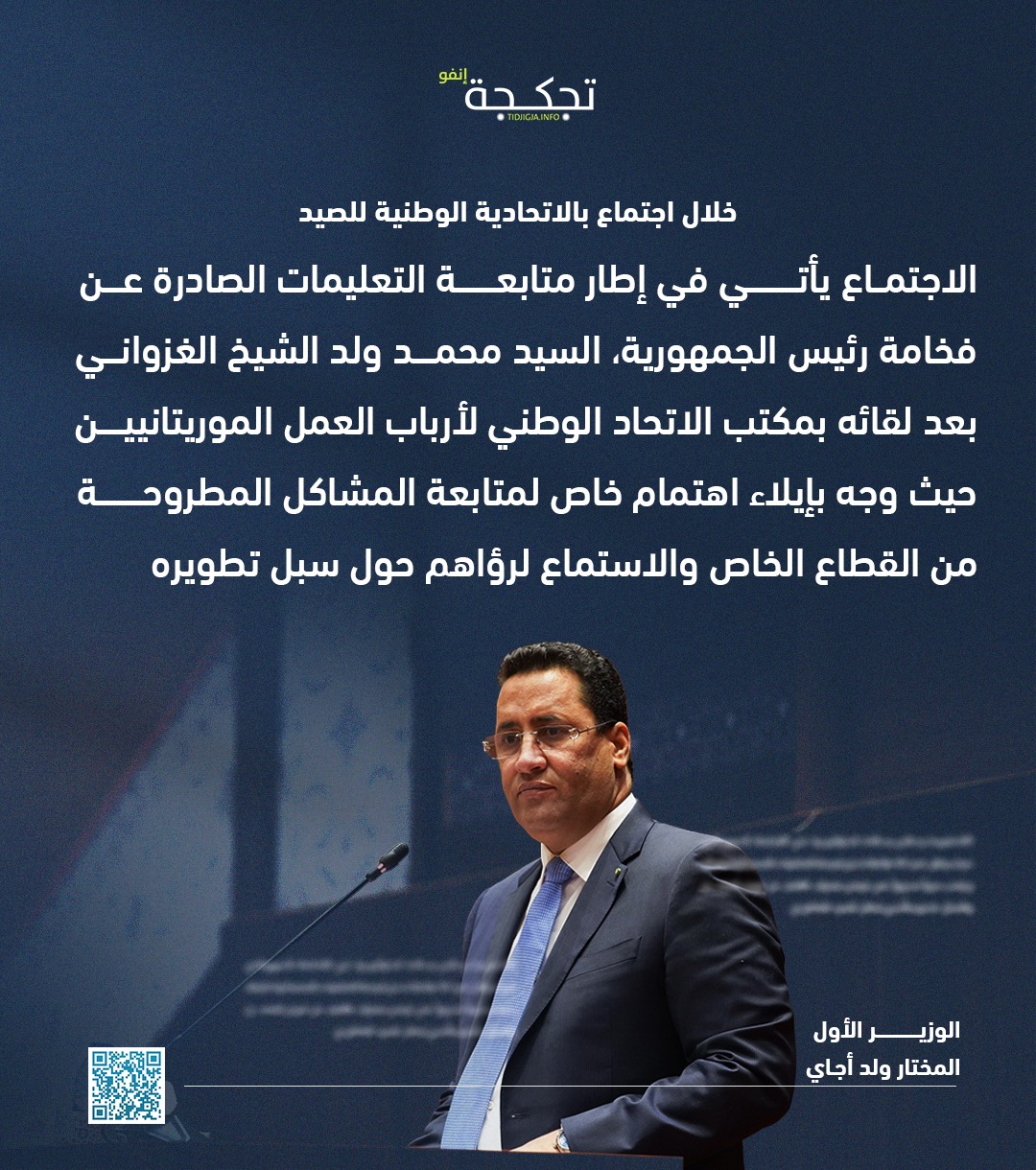 وأشار ولد أجاي إلى أن الحكومة تعمل على تكريس نهج الحوار المستمر مع مختلف الفاعلين الاقتصاديين، بما يسهم في تشخيص التحديات المطروحة واقتراح الحلول الكفيلة بتعزيز أداء القطاعات الإنتاجية وخلق بيئة أكثر ملاءمة للاستثمار.