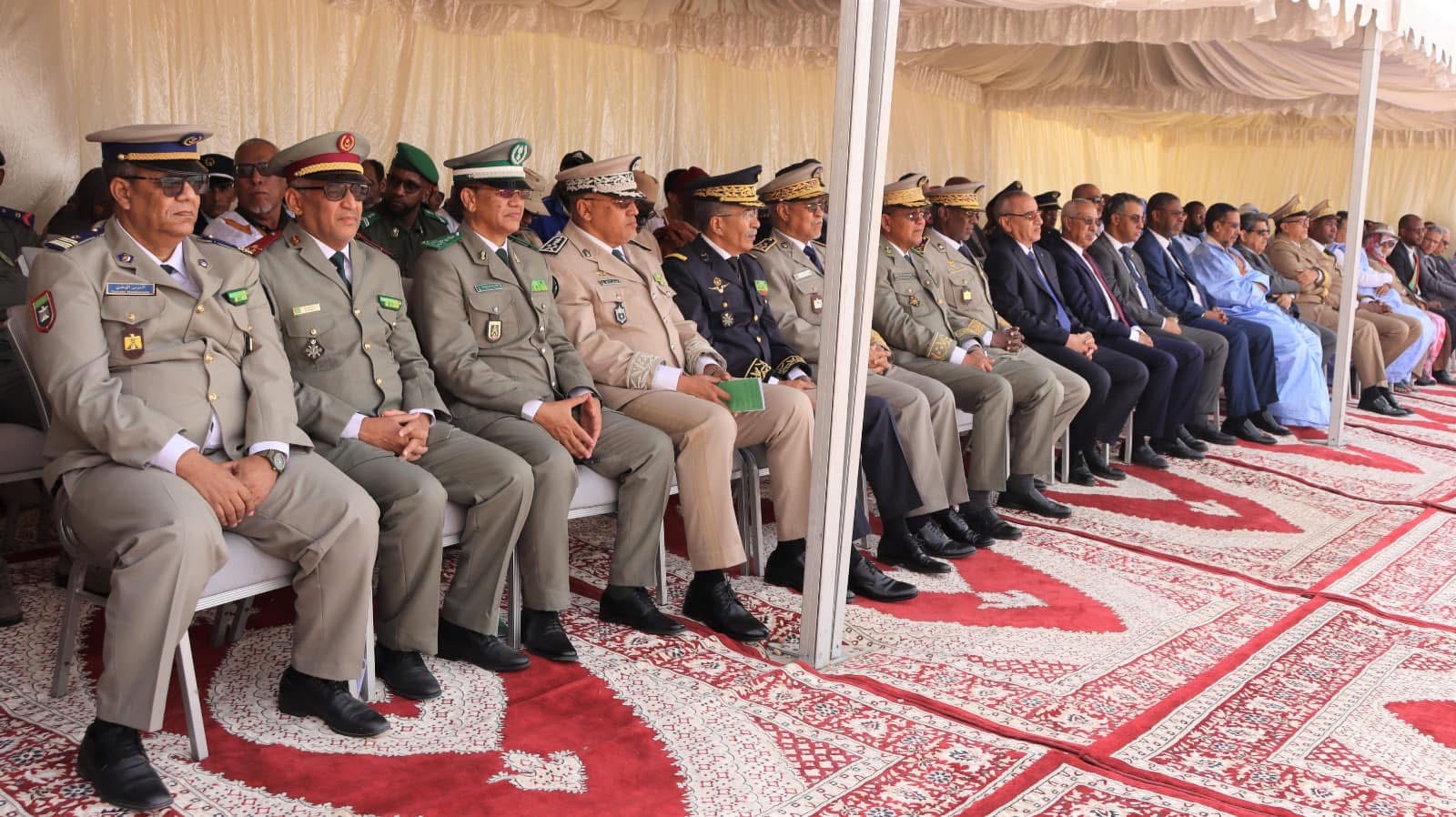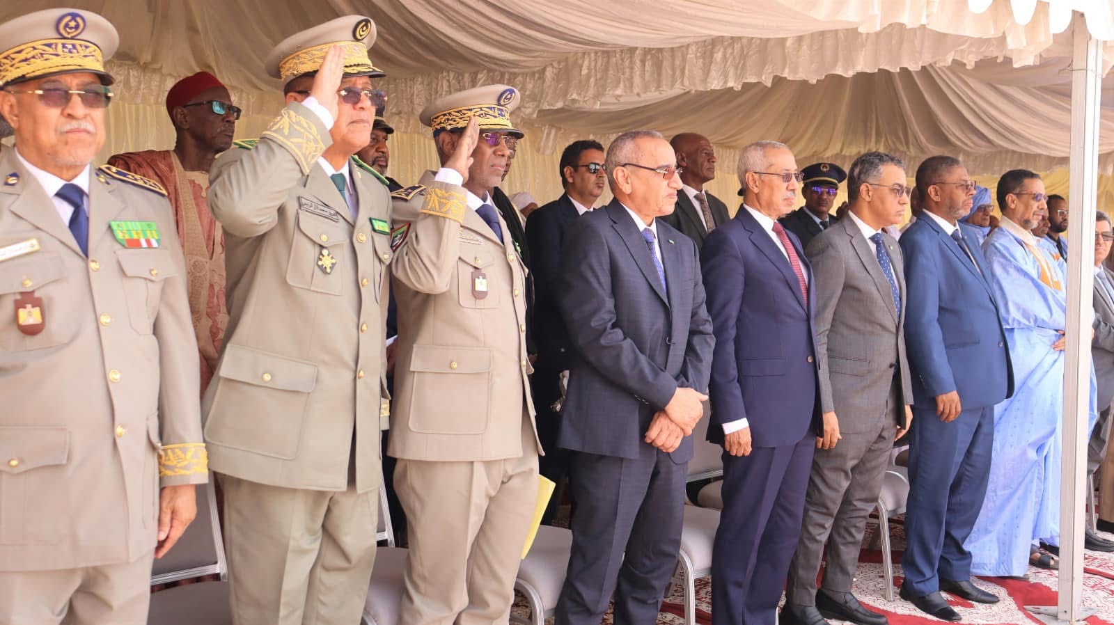 وحضر الحفل الذي أقيم بهذه المناسبة المدعي العام لدى المحكمة العليا؛ وقائد الأركان العامة للجيوش وقائد اركان الحرس الوطني والمدير العام للأمن الوطني وقائد أركان الدرك الوطني والمدير العام للجمارك والأمين العام لوزارة الداخلية وترقية اللامركزية والتنمية المحلية وواليا نواكشوط الغربية والشمالية وممثل عن جهة نواكشوط وحاكم لكصر وعمدة بلديتها بالإضافة إلى عدد من السفراء وممثلي البعثات الدبلوماسية والملحقين العسكريين.