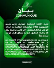 تأجيل المباراة النهائية لكأس رئيس الجمهورية لكرة القدم إلى موعد لاحق