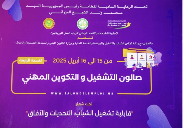 يستعد الاتحاد الوطني لأرباب العمل الموريتانيين، بالتعاون مع وزارة تمكين الشباب لتنظيم النسخة الرابعة من الصالون الوطني للتشغيل والتكوين المهني، ابتداءً من يوم غد الثلاثاء وعلى مدى يومين.