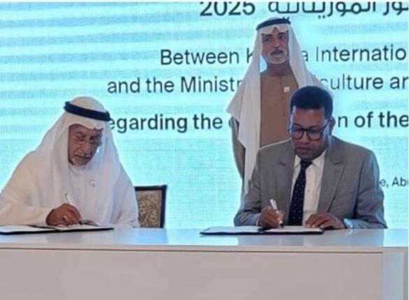 وقعت وزارة الزراعة، اليوم الأربعاء، في أبوظبي بدولة الإمارات، مع جائزة خليفة الدولية لنخيل التمر والابتكار الزراعي، على مذكرة تفاهم تتعلق بتنظيم المهرجان الدولي الرابع للتمور الموريتانية لعام 2025.