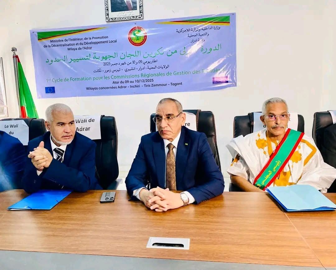 افتتح وزير الداخلية وترقية اللامركزية والتنمية المحلية، محمد أحمد ولد محمد الأمين، اليوم الثلاثاء في مدينة أطار، دورة تكوينية للجان الجهوية لتسيير الحدود في ولايات آدرار وتيرس الزمور وتكانت وانشيري.